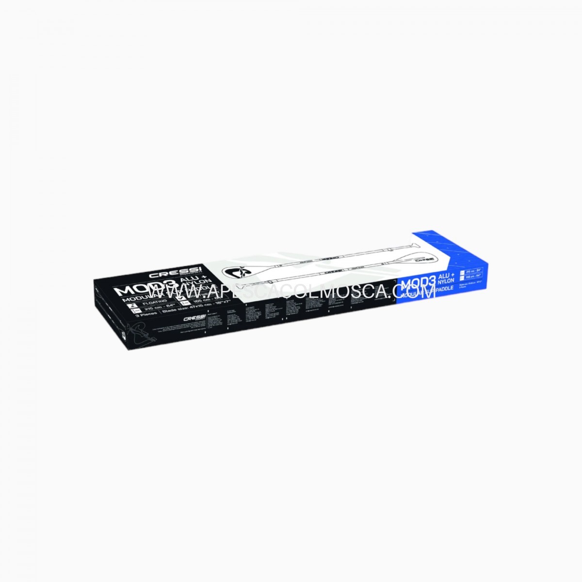 La pagaia da Sup Cressi Mod in 3 pezzi con albero in alluminio, è un modello robusto e versatile che presenta una regolazione telescopica da 165-215 cm.