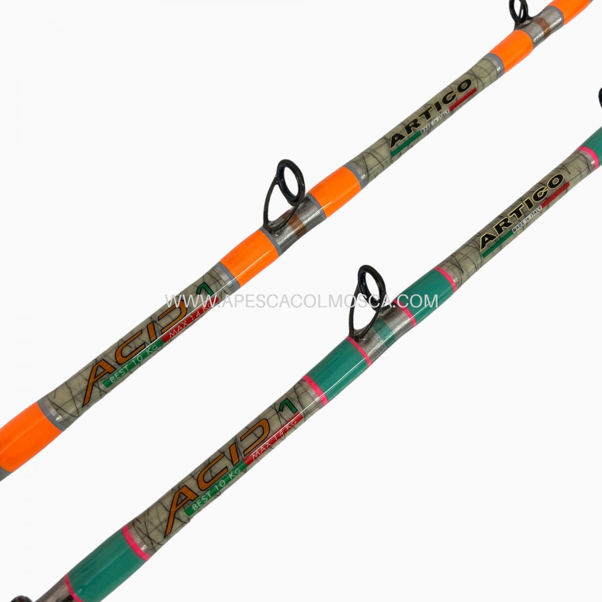 Ideati per la pesca in stand-up, i due modelli Acid mantengono i principi tecnici e costruttivi che caratterizzano le Apache, ma sono stati studiati e realizzati appositamente per essere montati a spirale: questa tipologia di applicazione delle guide, che tramite dei calcoli fatti con il fusto in trazione a vari carichi permette di sfruttare il blank a 360°, che in pesca va a lavorare sia in flessione che in torsione, a differenza delle canne montate in linea dove viene sfruttata solo una parte della forza del blank e lavorano solo in flessione.